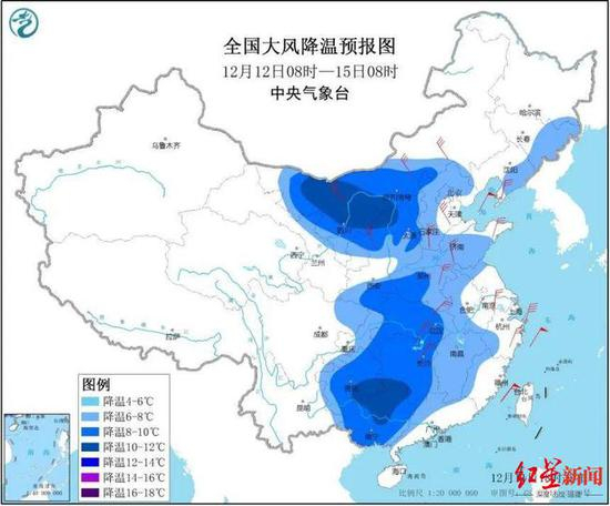 红星资本局注意到,在今年12月11日,中央气象台发布了今年冬天的首个寒潮蓝色预警,有17个省市区迎来了“断崖式”降温。