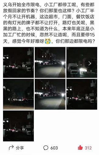 浙江等多地限电 义乌路灯都关了 有工厂上1休4