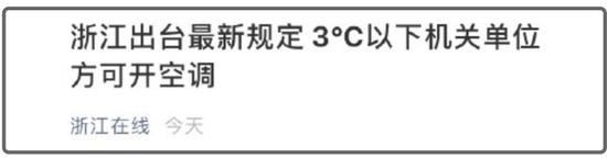 另外,浙江的相关部门也在12月11日发布紧急通知,规定年底前市级单位办公区气温在3℃以下方可开空调。