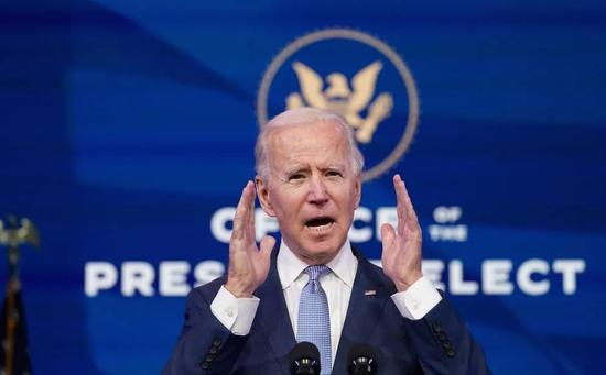 当地时间1月6日,美国当选总统拜登发表讲话,呼吁停止暴力活动。图源:澎湃影像平台