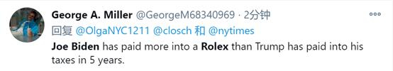 甚至有人顺带讽刺起特朗普,“乔·拜登买劳力士的钱比特朗普5年里交的税还多。”↓