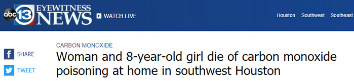 美国广播公司(ABC)13台报道称,得克萨斯州一户人家试图用汽车取暖,结果导致一名成年女子和一名8岁的小女孩一氧化碳中毒身亡。休斯顿警方介绍称,当时这户人家发动了车库里的汽车,希望通过汽车运行产生的热量取暖。