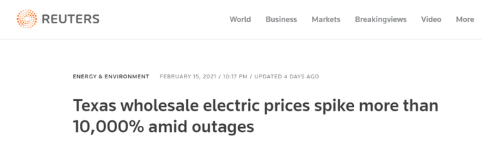 看完分裂的美国政治,再来看看美国市场。据路透社2月15日报道,极寒天气导致美国得州电价飙升逾100倍。