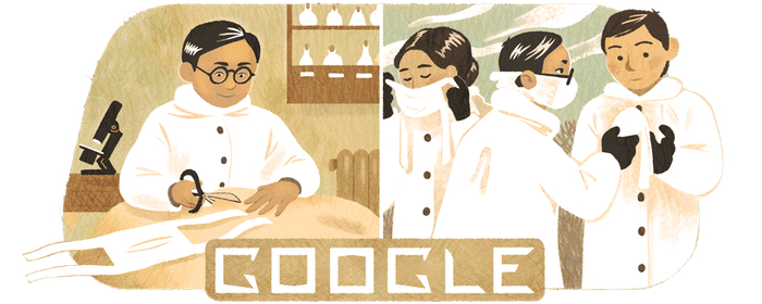 10日的谷歌首页涂鸦墙,画中人物为伍连德