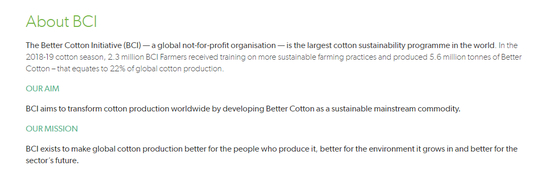 BCI自称是世界上最大的棉花可持续发展计划,本身并不掌握任何的棉花种植技术,存在的意义就是“卖证”给世界各地的品牌方,一手收钱,一手发证,合作品牌完成BCI的课程,就能拿到它的认证。