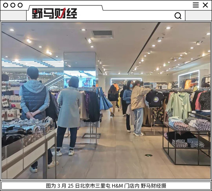 有意思的是,野马财经记者今日在探访H&M门店后发现,其所受影响似乎不大,北京市三里屯H&M门店内仍有不少顾客逛街试衣。