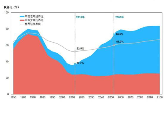虽然中国目前的老年抚养比还未超过20%,仍处于人口红利期。但根据联合国经济与社会事务部人口司于2017年发布的《世界人口展望》显示,中国的人口抚养比在2055年将超过世界平均水平,达到76.5%。从这点而言,中国延迟退休年龄,已经具有相当的紧迫性。