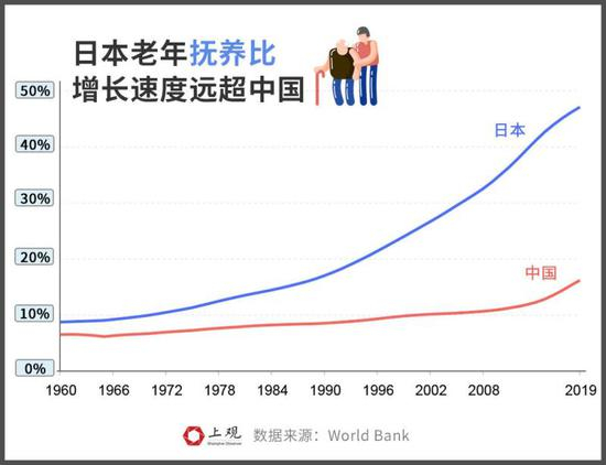 再以日本为例,2019年日本的老年抚养比已经超过了47%,大约是同期中国老年抚养比的三倍。1986年,日本通过的《老年劳动法则修正案》,将退休年龄延迟至60岁;2013年4月,退休年龄再次推迟5年,为65岁。
