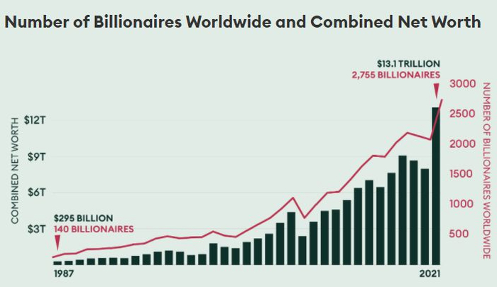 4月6日,福布斯发布第35期“全球亿万富豪榜”,数据显示,疫情期间富豪圈子里的财富迎来了前所未有的增长。本次入榜亿万富翁人数达到2755人,总资产13.1万亿美元,双双打破了历史记录。其中,上榜富翁人数比前一年多了660人,总资产则多了8万亿美元,而且是首次冲破10万亿美元历史大关。