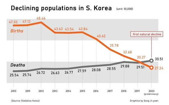 2020年,韩国迈入人口“死亡交叉”——出生人口比死亡人口少3.3万