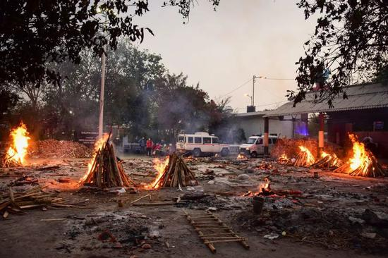 新德里殡仪馆为新冠肺炎遇难者进行火葬/视觉中国