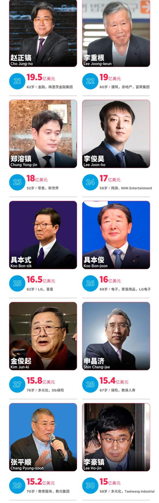 福布斯亚洲发布2021韩国富豪榜,首富交替制药巨头徐廷珍成赢家