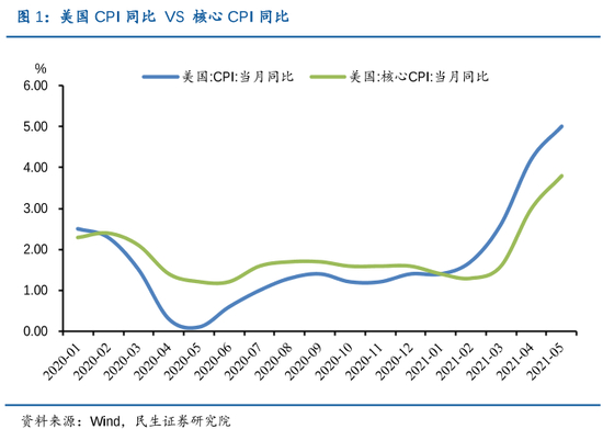 近两月,美国CPI涨幅同比为4%—5%,相比之前的2%确实有一个跳升,引起了大家关注。