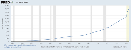 2020年美国M2增长25%,超越近20年的历年水平,大家担忧通胀是有道理的。