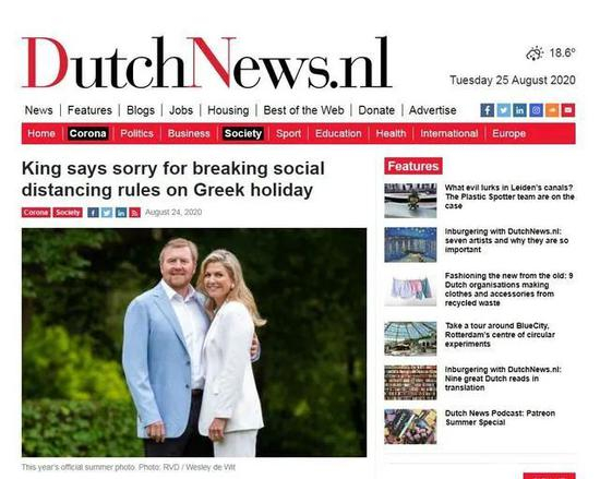 去年8月,国王和王后在希腊度假,与他人合影时既没有保持社交距离,也没有戴口罩。舆论批评称,这样的照片不仅违反了当地疫情防控规定,还可能给“荷兰王室的粉丝们作出不良示范”。