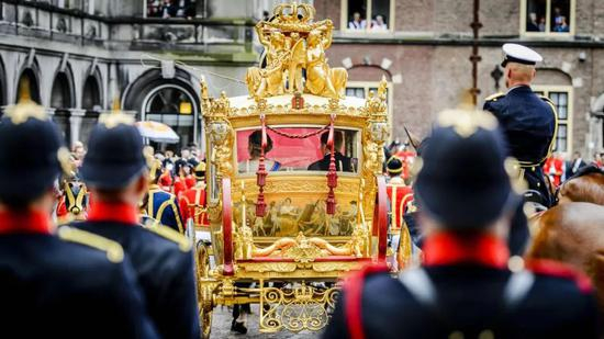·国王威廉-亚历山大和王后马克西玛乘坐黄金马车出行。