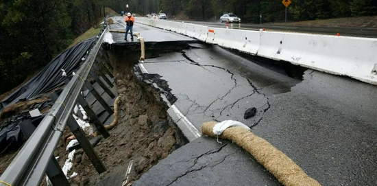 2017年2月,强风暴导致加州高速公路的部分路段塌陷