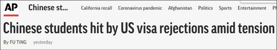 美联社9月14日以“中国学生在美中关系紧张中被美国拒签”为题刊文,采访了多名被美国拒签的中国留学生和家属。