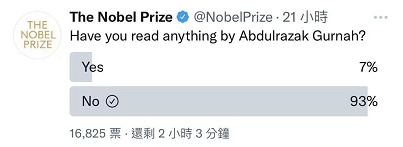 在国内外各大媒体此前的预测榜单上,他几乎不曾被提起。在诺贝尔奖官方推特发起的投票中,有93%来自世界各地的读者表示从未读过他的作品。
