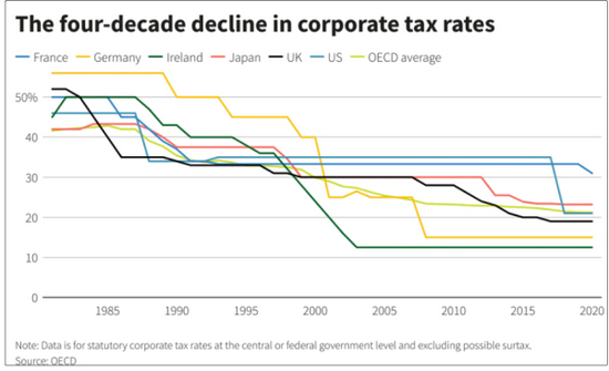 该协议在结束长达40年的“激烈讨论”后,为那些试图用跨国公司进行避税,来吸引投资和就业机会的国家设置明确底线,有效地在阻止这些公司在低税收国家获取巨大利润。