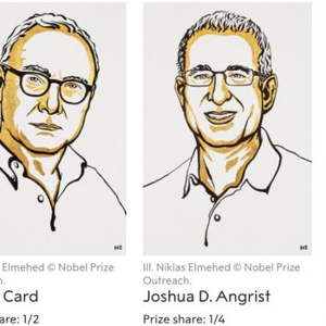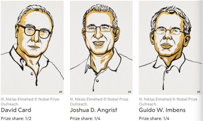 去年,罗伯特·威尔逊(Robert Wilson)和保罗·米尔格罗姆(Paul Milgrom)因其对拍卖理论的贡献被授予诺贝尔经济学奖。今年,此奖项授予美国加州大学伯克利分校经济学教授戴维·卡德(David Card),因其对劳动经济学的实证贡献;同时授予美国麻省理工学院福特经济学教授乔舒亚·安格里斯特(Joshua D. Angrist)和美国斯坦福大学经济学教授吉多·因本斯(Guido W. Imbens),因其对因果关系分析的方法论贡献。