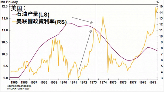 关于1970年代滞胀的成因,市场上一种流行的说法是两次石油危机急剧地推高了全球原油价格和通胀,逼迫西方国家央行不得已采取激进的加息以遏制通胀压力,从而使经济陷入了衰退。
