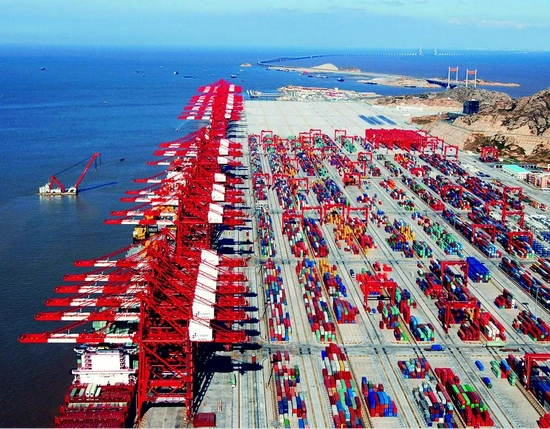 洋山深水港是我国首个在微小岛上建设的港口,也是我国发展上海自由贸易试验区、建设海洋强国的基础。 图 / 建明