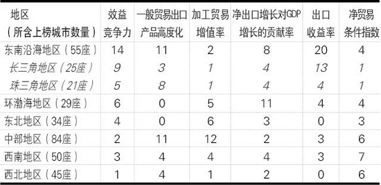 效益竞争力:通过对一般贸易出口产品技术含量、加工贸易增值水平、净出口对经济带动作用、出口收益能力以及贸易条件状况等进行测算,客观评价各城市外贸效益及其变化情况。