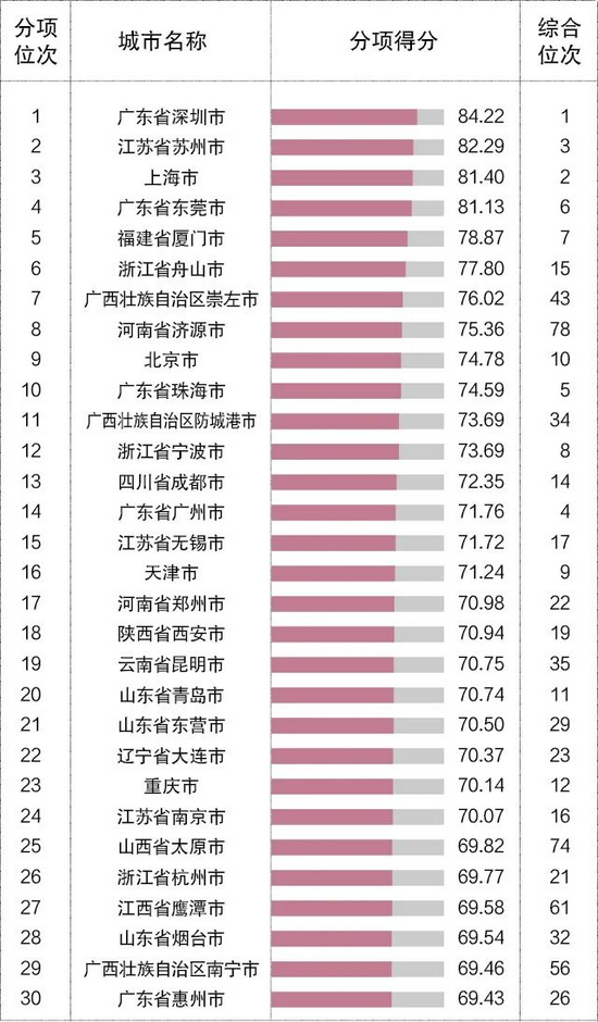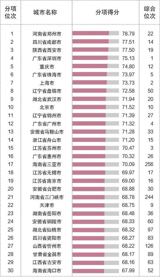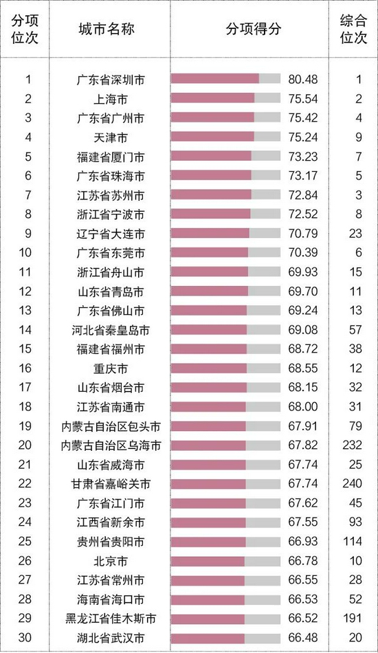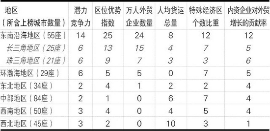 注:因“区域优势指数”指标和“特殊经济区个数比重”指标存在并列排位,故累计结果超过30座。