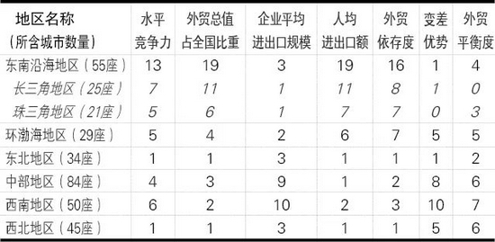 水平分项竞争力:衡量城市外贸水平不等同于单纯的规模比拼,需要从企业平均实力、相对发展速度、进出口平衡度、经济外向度等多维度多角度进行综合评价。