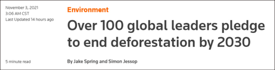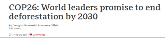 COP26达成首个“里程碑”协议:超过100国承诺到2030年停止毁林