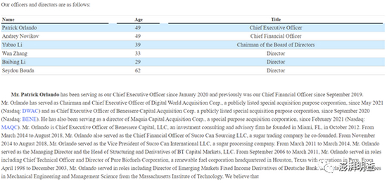 DWAC的S-1文件中包含了当前该公司的主要管理者名单,从中可以找到一个叫派特里克·奥兰多(Patrick Orlando)的人,在DWAC担任董事会主席和首席执行官。