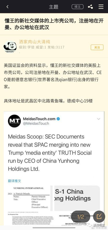 即将和特朗普新公司合并上市的壳公司,办公地址在武汉?