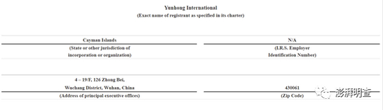 在6月提交的10-K报告中,Yunhong International明确提到,其为一家注册在开曼群岛的空壳公司,成立于2019年。该公司的办公地点设在中国武汉市武昌区中北路126号19层4号。