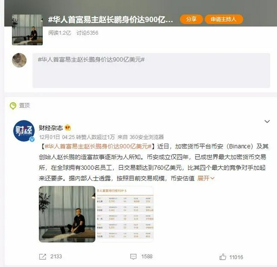 近日,币圈大新闻也不断,加密货币平台币安(Binance)创始人赵长鹏超过农夫山泉董事长钟睒睒,成为新的华人首富的事也在朋友圈刷屏。