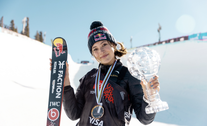 自由滑雪不必说,爱凌9岁时已经横扫全美少年组冠军;13岁第一次参加成人项目就拿了第一;15岁时登上国际雪联年度积分榜榜首。