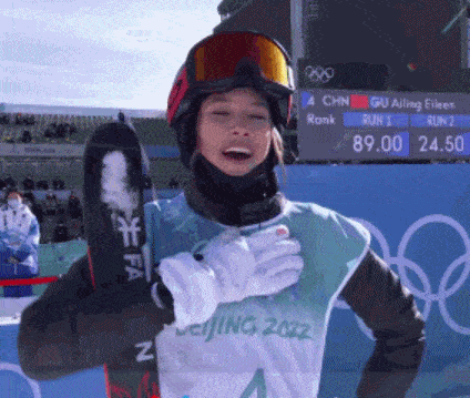 虽然在第二跳,谷爱凌在尝试双手抓板动作出现失误,看分时青蛙公主吐舌头的顽皮表情又上了一次热搜。
