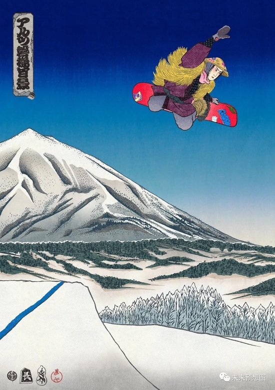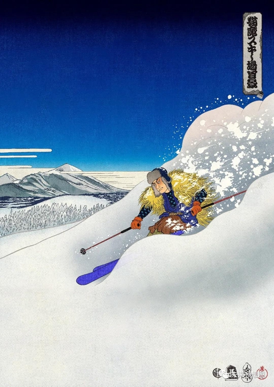 磐梯度假村的海报不在乎使用更出挑一点的广告文案,促销时,浮世绘风格的海报上会加上几行字,“快去告诉所有的滑雪笨蛋吧!”。这是个取巧的选择——浮世绘契合欧美观光客对日本风格的第一印象。
