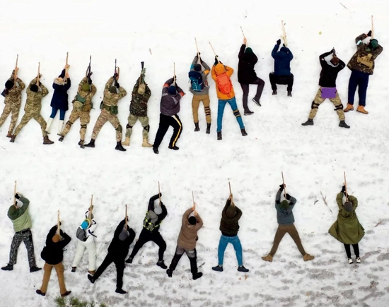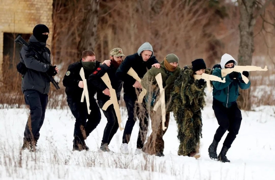 2月上旬,乌克兰首都基辅,一些平民加入乌克兰预备役部队,接受基本的战斗和生存训练。图/视觉中国 澎湃影像