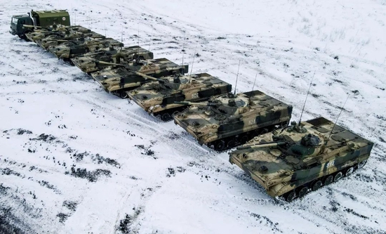 1月12日,在与乌克兰接壤的俄罗斯南部罗斯托夫地区,俄罗斯南部军区的军队举行作战演戏。图/澎湃影像