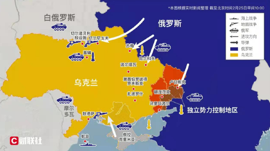 俄乌开战第二日最新局势图