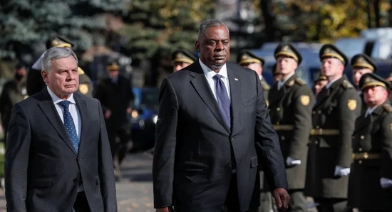 ▲ 2021年,美国国防部长奥斯汀出访乌克兰,在基辅与乌克兰国防部长检阅乌克兰仪仗队