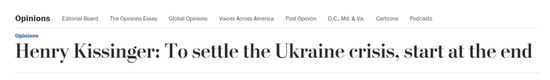 ▲ 2014年3月5日,美国前国务卿基辛格在《华盛顿邮报》以“解决乌克兰危机,从结束开始”为题刊文