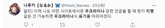 “现在开始无论在哪个网站上,在谈到乌克兰问题时,如果可能的话,我都要遵循乌克兰式的标记法。”