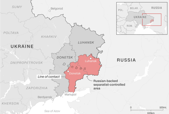 资料显示,顿巴斯地区位于乌克兰东部,靠近俄罗斯边境,面积约6万平方公里,以俄语为母语者占当地人口多数,俄罗斯族人也约占40%。顿巴斯地区是乌克兰最大的煤炭基地,也是工业重镇。此前普京宣布承认的“顿涅茨克人民共和国”和“卢甘斯克人民共和国”均属于该地区。