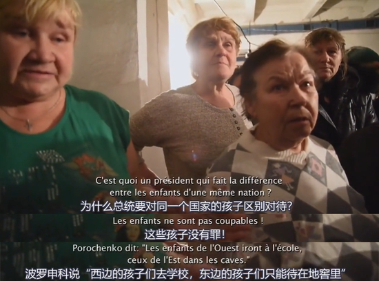 纪录片是以时任乌克兰总统波罗申科的一番气势汹汹的喊话开始的,“我们会有工作,而他们没有!我们会有退休金,而他们没有!我们的退休工人和孩子会有补贴,而他们没有!我们的孩子去学校、幼儿园,而他们的孩子只能躲在地窖里!”