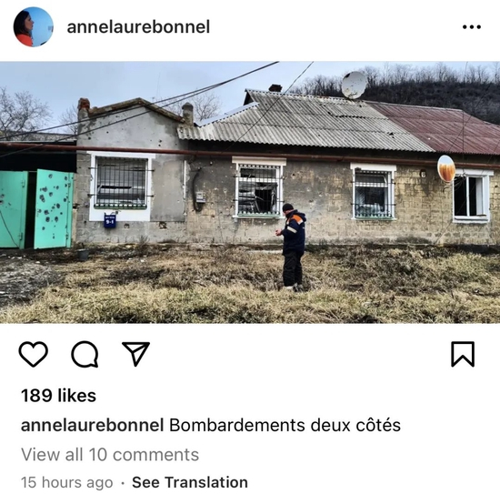 作为战地记者和摄影记者,博内尔一直在社交软件上同步她在顿巴斯地区的所见所闻。