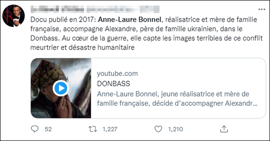 博内尔在法国电视台CNews上的一番话,让网民们了解了顿巴斯战争的真相。与此同时,博内尔2015年拍摄的一部关于顿巴斯地区的纪录片也开始引发关注。