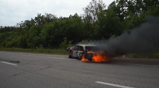 路边燃烧的汽车