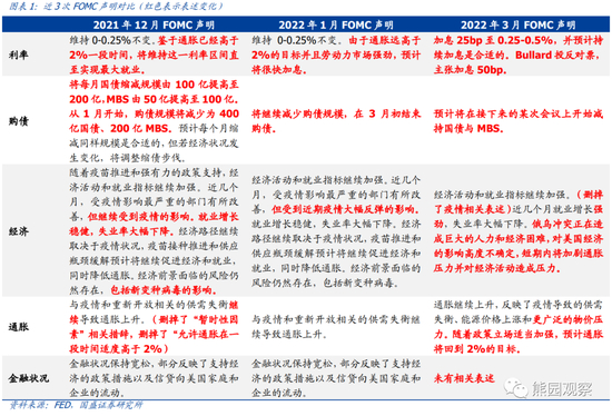 1.加息与缩表:本次会议如期加息25bp,会议声明中暗示将进行持续加息,并且将很快开始缩表,同时指出俄乌冲突将对经济活动产生影响,并加剧通胀压力。鲍威尔重申经济前景高度不确定,政策取决于数据表现,并表示最快5月公布缩表计划。